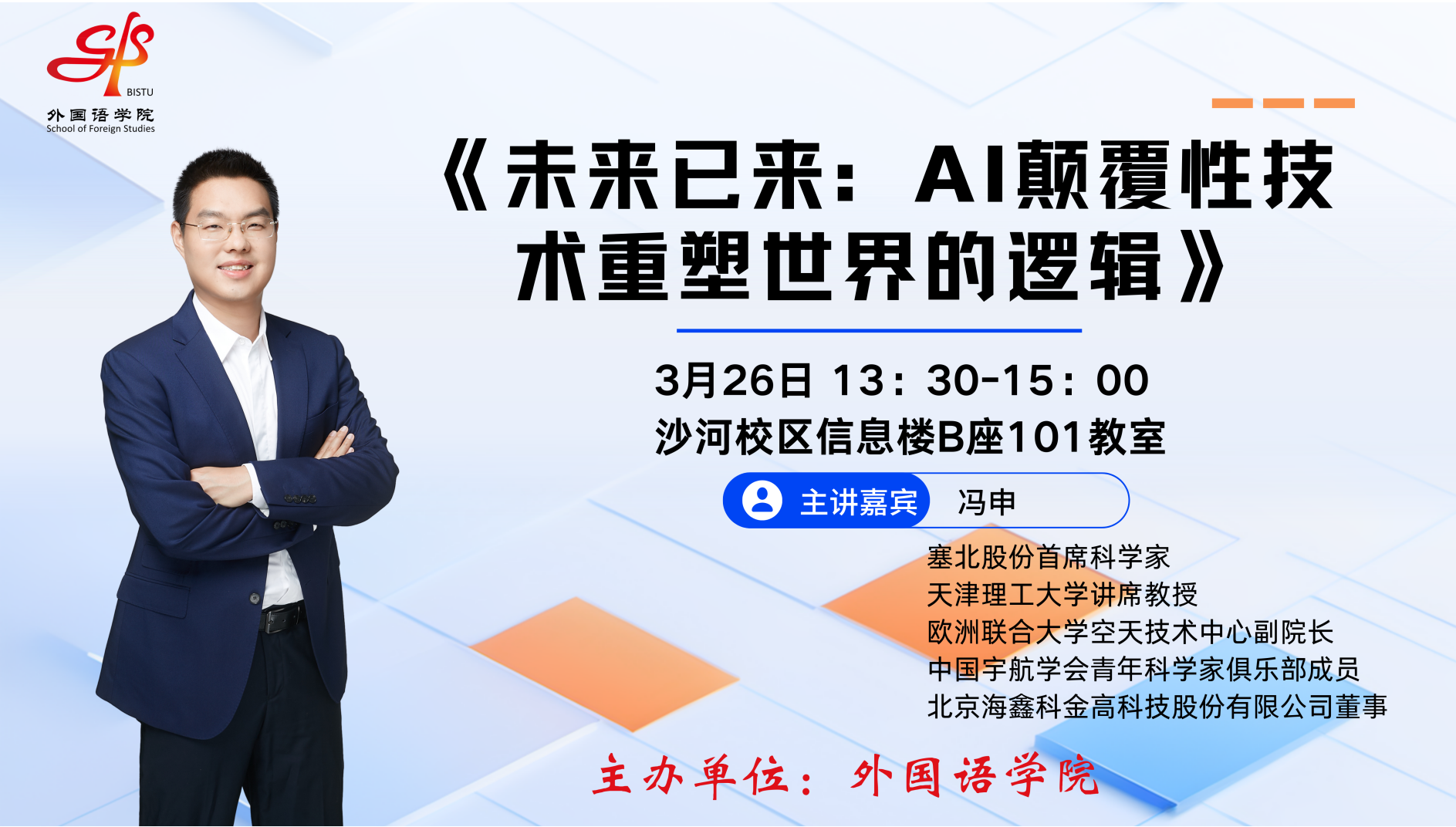 主讲人:冯申 我校校友,现任欧洲联合大学空天技术中心副院长,博士生导师,天津理工大学讲席教授,北京航空航天大学硕士生