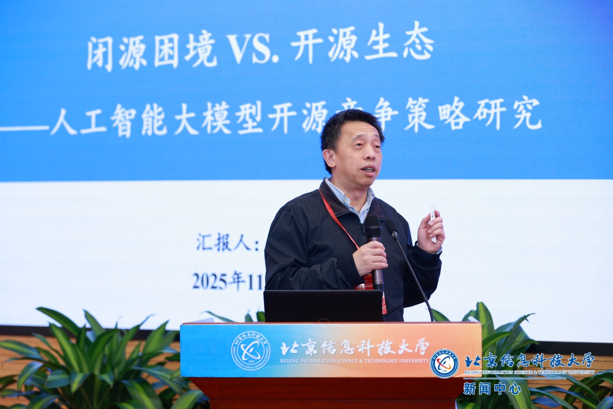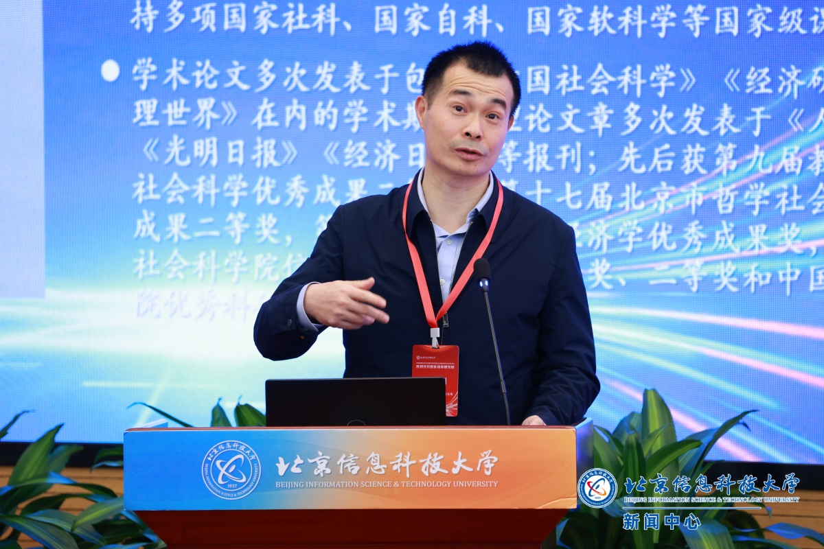 中国信息经济学会战略与学术委员会主任谢康,代表中国信息经济学会对我校承办本次年会表示衷心感谢。谢康回顾了学会在推动学科交叉创新与青年学者培养的历程,并期待与北京信息科技大学携手,共同加强学术资源网络建设。