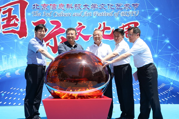 王传亮宣布国际文化周开幕,并与参会校领导一同开启转球揭幕。