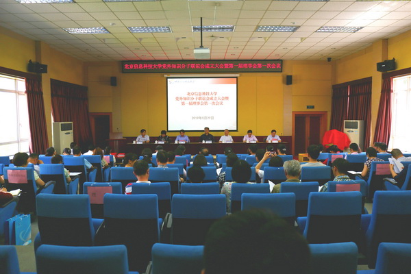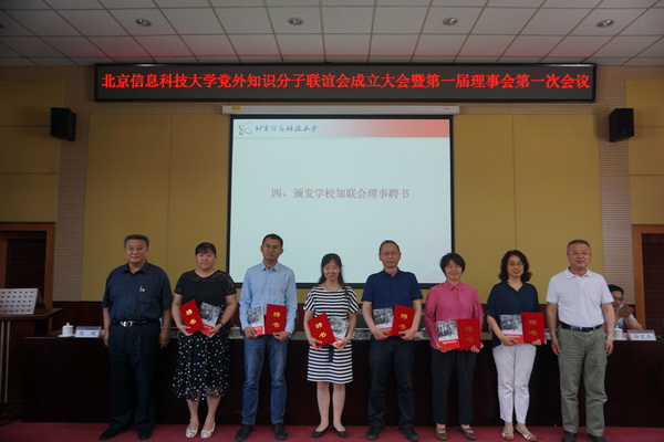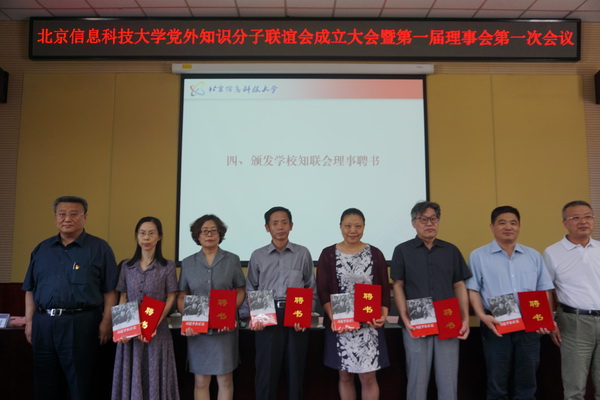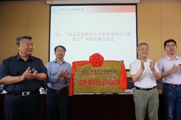 王传亮、王永生、张猛、相京共同为“北京信息科技大学党外知识分子联谊会”揭牌。
