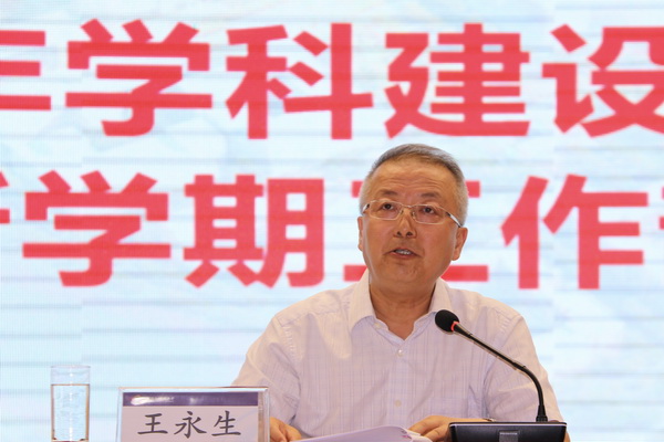 王永生简要解读了2017年以来国家和北京市在学科建设方面的最新政策举措,并具体分析了我校在学科建设上面临的形势和存在的主要问题。他表示,我校学科建设存在学科建设水平不高、学科队伍力量不足、科技创新能力不足、研究生教育质量有待整体提高等亟待解决的问题,强调要进一步提高政治站位,认清形势,增强忧患,围绕大学的核心使命,认真思考自身的使命和愿景,把包括学科建设在内的自身的发展放到国家、北京市、高等教育发展的宏观大势中来审视!进一步聚焦立德树人、聚焦国家需求、聚焦城市定位、聚焦突出特色、聚焦内涵、聚焦问题来思考规划未来包括学科发展在内的发展路径。