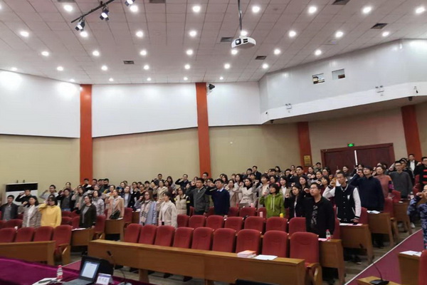 为了深入贯彻习近平新时代中国特色社会主义思想,进一步加强我校师德师风建设,引导新入职教职工系好职业生涯“第一粒扣子”,学校党委结合“不忘初心 牢记使命”主题教育活动,以习近平总书记对新时代“四有”好老师的要求为遵循,贯彻落实政治坚定、专业领先、素养全面、敬业包容、勤信仁爱的目标要求,党委教师工作部牵头组织开展了以“坚守初心,践行使命,做新时代‘四有’好老师”为主题的新入职教职工师德师风专题培训。培训于2019年10月18日在小营报告厅举行,新入职的140余名教职工参加了此次培训。