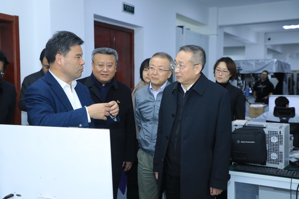 张家明一行首先来到我校位于龙岗路的先进电子器件与系统国际联合实验室,视察实验室设施设备,详细询问我校科研情况,与实验室工作人员亲切交谈。全国政协委员、实验室负责人祝连庆教授汇报有关情况。