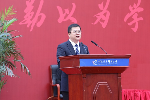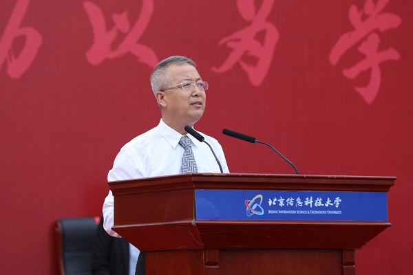 在升国旗,奏国歌仪式后,王永生致辞寄语新生。王永生代表学校全体师生员工热烈欢迎2020级新同学。王永生为同学们讲述了信息科大的发展历史,勉励同学们把握好大学这个新起点,走好自己的青春之路,并提出三点希望:一是勇担使命确立高远志向。让青春拥有更高的价值,首先要树立远大的志向。王永生以我校张福学教授青年时期立志科研的故事勉励同学们,要在宝贵的青春年华里,立鸿鹄志、做奋斗者,勇担使命,与时代同行,在服务国家和社会中追寻并实现自己的人生价值。二是学思践悟汲取前行力量。远大志向的实现,离不开持之以恒的学习探索。王永生希望同学们在未来的学习中,要豪情满怀地投身社会发展,以更加宽广的视野和胸怀,紧跟时代,追踪前沿,把握趋势,深入思考知识与应用、个体与时代、个人发展与国家发展之间的关系,在学思践悟中汲取前行的力量。三是立德修身把握正确航向。大学之道在明明德,在亲民,在止于至善。“至善”不仅意味着知识结构的完善,更意味着道德品行的锤炼,人格境界的健全与提升。王永生希望同学们在努力学习的同时,也要注重自身品格的塑造和德行的修养,系好人生第一粒扣子,迈好人生第一步台阶。