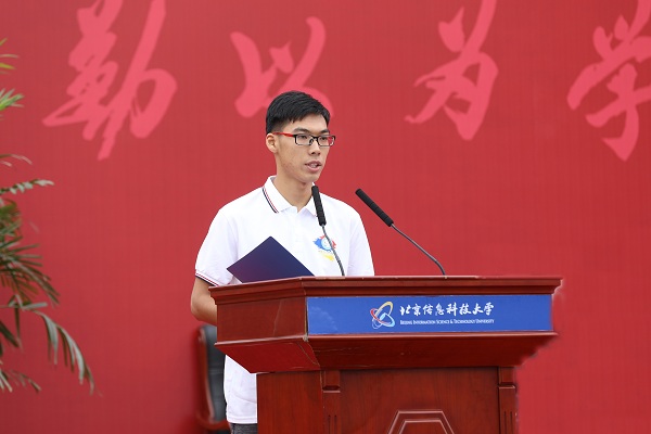 来自信息与通信工程学院的周耔呈作为本科生新生代表发言。他表示,今年大家经历了最特殊的高考,伴随着艰辛与不易,终于来到自己的理想院校,同学们要更加努力珍惜。校长的寄语,让大家更加清晰学习目标,将努力脚踏实地、努力行动,在实现理想的奋进追逐中展现出青年人勇敢奔跑的英姿。