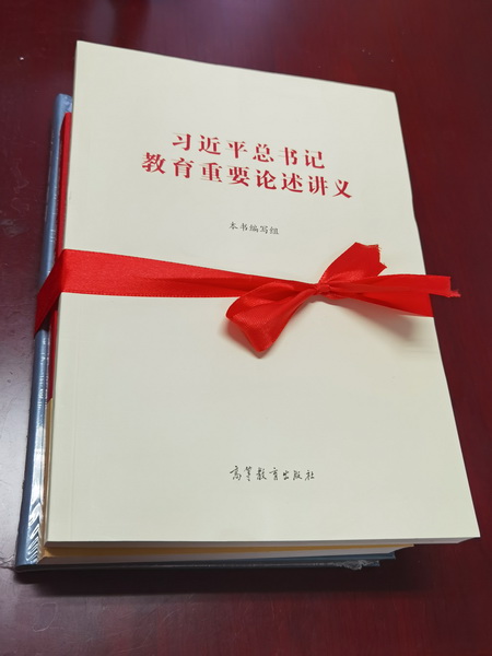 王永生、王秀彦向与会理事赠送了《习近平总书记教育重要论述讲义》、《党的十九届五中全会<建议>学习辅导百问》以及纪念圆明园罹难160周年等书籍。