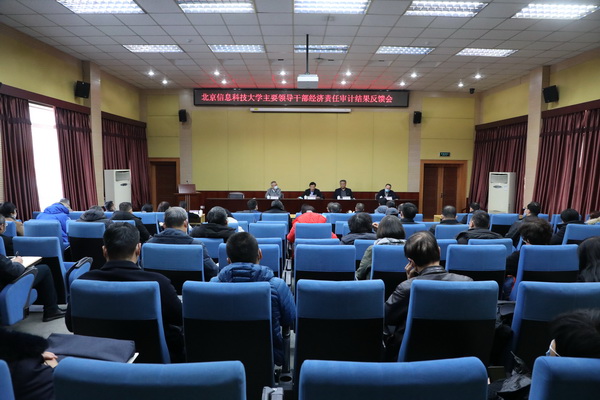 12月22日下午,北京市审计局在小营校区国际学术交流教室召开北京信息科技大学书记校长经济责任审计结果反馈会。北京市审计局党组成员、副局长王炜,市审计局第五派出局局长李闻宇,市审计局三级调研员陈莎莎,校党委书记王传亮,校党委副书记、校长王永生出席会议。学校领导班子成员、全体正处级干部参加会议。会议由李闻宇主持。