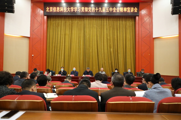 3月9日上午,校党委书记王传亮在小营校区报告厅主会场、国际学术交流教室分会场宣讲党的十九届五中全会精神。全体校领导、全体处级干部参会。
