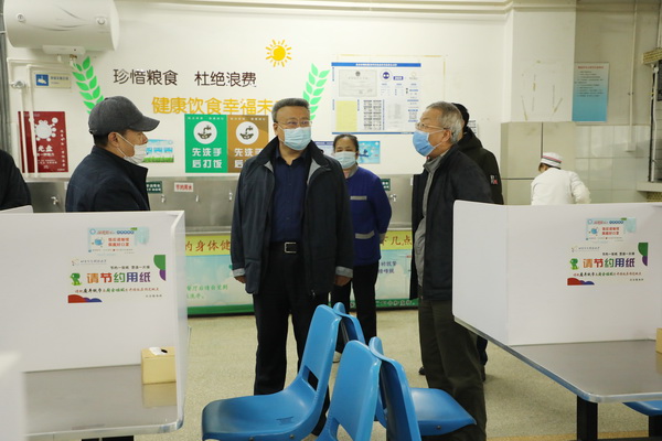 王传亮、王永生来到学生食堂,询问食堂学生返校的防疫安排和饮食准备情况,强调,要严格食堂食品和工作人员的防疫管控,做好返校后师生分流就餐的管理工作,做好防疫消杀,确保食品安全,让广大师生吃得放心、吃得健康。
