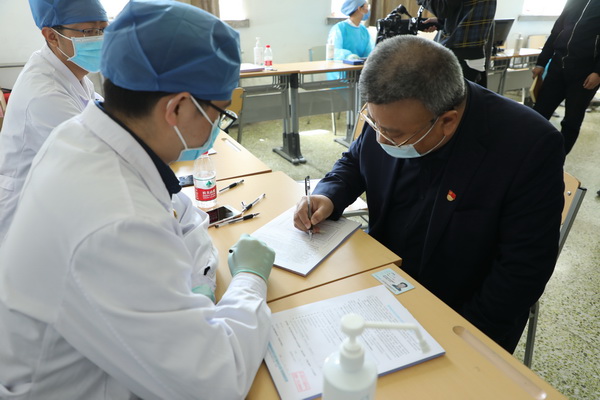 4月14-15日,北京信息科技大学有序组织师生接种第二针新冠肺炎疫苗。校党委书记王传亮,校党委副书记、校长王永生带头按时接种新冠肺炎疫苗第二针。参加此次接种的人员为3月24日至25日在校接种第一针次、满足21天间隔的师生。