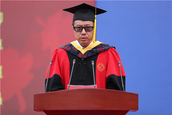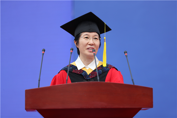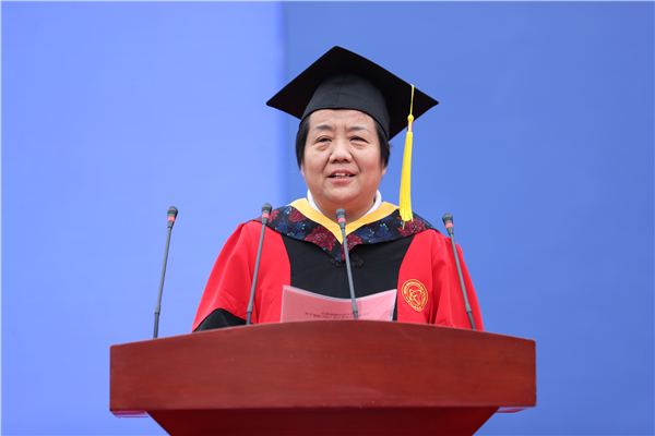 王永生回顾了我校研究生教育40年发展历程和取得的成绩,指出,学校始终坚持立德树人根本任务,致力于服务国家和首都发展战略,培养了一大批高素质应用型创新人才,为国家建设和首都发展做出了应有的贡献。王永生寄语广大毕业生:一是坚守理想信念,传承家国情怀。希望同学们勇敢地接过师长的旗帜,传承矢志不移的家国情怀,探索磨练,勇攀高峰,让青春在为祖国、为民族、为人民的不懈奋斗中绽放绚丽之花。二是坚守初心使命,永葆创新精神。希望在未来的人生道路上,同学们能够鼓起勇气去探索这变化万千的世界,敢于向未知领域挑战,成为一名孜孜以求的创新者,去勇敢地掀开科技创新的新篇章!三是坚守赤子之心,不忘为学之道。希望同学们在今后的学习和工作中,要时刻怀抱赤子之心、不忘为学之道、永葆学人风范,不弄虚作假,不投机取巧,日积月累、砥砺前行,最终必将厚积薄发,收获丰硕的成果。