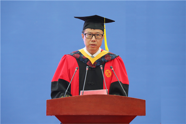 机电工程学院院长黄民作为教师代表发言。他表示,希望广大毕业生,作为青年人要拼搏正当时,奋进新时代;作为社会人要与时俱进,开拓创新;作为中国人要厚植家国情,胸怀天下事,勇于担当奉献。