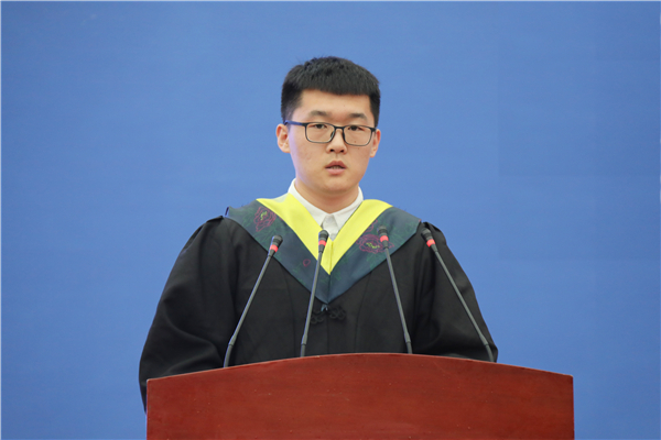 信息与通信工程学院安昊同学作为毕业生代表发言。他表示,未来必将继续秉承“勤以为学,信以立身”的校训精神,肩负历史使命,坚定前进信心,立大志,明大德,成大才,担大任,让信息科大人在祖国大地上绽放绚丽之花!