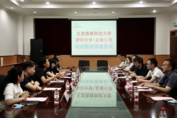 6月28日下午,校长助理林国策在第四会议室会见北京市清河中学校长彭璇、北京市永泰小学校长刘京丽一行,并分别与两校签署合作协议。党委办公室主任王智勇、校工会常务副主席郭小兵、对外联络(校友校史工作)办公室主任刘斌及副主任张艳等参加仪式。