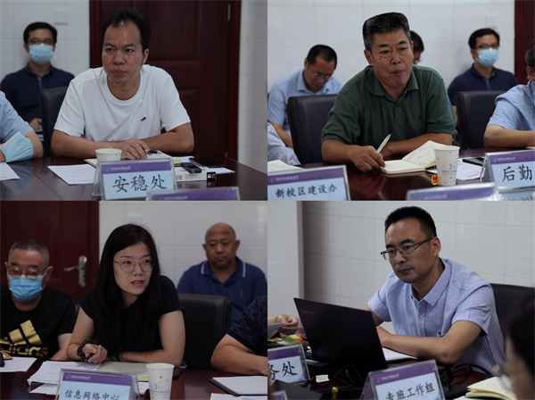 新校区建设办主任崔凯汇报新校区建设工作进展情况;新校区管委办副主任程立军汇报新校区搬迁工作进展情况。教务处处长米洁、资产处处长胡滔、安稳处处长龚汉明、后勤处处长郑召义、信息网络中心陈小磊就本部门相关工作进展和待解决问题进行了汇报。新校区管委办王继强介绍新校区整体搬迁工作专班具体职责和分工。