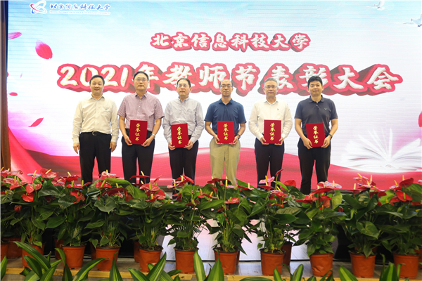 与会校领导分别为国家级青年人才、北京市级教学名师、北京市高等学校青年教学名师、北京市先进工作者、中国仪器仪表学会科学技术进步奖、北京市科学技术奖·科学技术进步奖、中国商业联合会科学技术奖·全国商业科技进步奖荣誉获得者;享受政府特殊津贴、国家级一流课程、国家级一流本科专业建设点、市级(示范性)职工创新工作室、中国产学研合作创新成果奖、北京市一流本科专业建设点荣誉获得者;北京市海外人才、2020年北京市高校优秀本科育人团队、北京市城乡社区共建先进个人、2020年北京市高校毕业生就业工作先进个人、2020年北京市高校优秀本科教学管理人员荣誉获得者;北京市青年教师基本功比赛、北京市辅导员素质能力大赛、第一届北京高校教师教学创新大赛、北京高校就业创业金课、北京高校优质本科教材课件获奖者;北京高校优质本科课程、学科竞赛国奖指导教师、学科竞赛省部级奖指导教师、北京市优秀创业团队指导教师荣誉获得者;北京市本科生优秀毕业设计(论文)指导教师、校级优秀毕业设计(论文)指导教师、优秀硕士学位论文指导教师荣誉获得者;校级教学名师、校级青年教学名师、校级师德标兵、校级优秀主讲教师、校级优秀辅导员、优秀班主任荣誉获得者;校级优质课程、校级班主任职业能力邀请赛、校级教学创新大赛、校级青年教师基本功比赛获奖者;后勤保障、安稳保障先进个人;从事教育事业三十年教职工颁奖。
