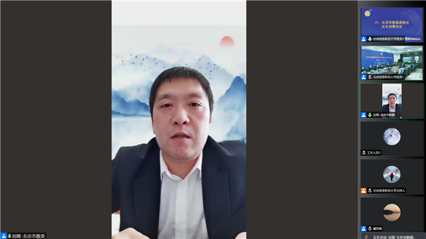 刘霄对各主办单位、各参赛高校以及大赛志愿者对本届大赛的支持和参与表示感谢,对承办单位北京信息科技大学的精心组织和辛苦付出表示感谢。刘霄指出,时逢国家昌盛,时代开明,为技术创新和发展提供了良好的机遇。机器人、人工智能、大数据、云计算、物联网、区块链技术为国家和首都创新发展提供了广阔的空间。刘霄表示,今年虽是线上比赛,但丝毫没有消减同学们参赛的热情。希望同学们在线上能够充分展示自我、交流思想,期望同学们未来能用所学为国家和社会做出更大的贡献。