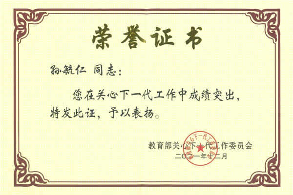 我校孙毓仁同志荣获全国教育系统关心下一代工作先进工作者