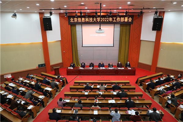 3月4日上午,北京信息科技大学召开2022年工作部署会暨二级单位综合考核表彰会。会议在小营校区报告厅设主会场,在小营校区国际学术交流教室、小营校区主教教室、健翔桥校区图书馆报告厅设分会场。校党委书记王传亮,校党委副书记、校长王永生出席会议并讲话。校领导班子成员,全体处级干部,全体正教授,学院系主任、办公室主任、分团委书记参会。大会由校党委副书记王秀彦主持。