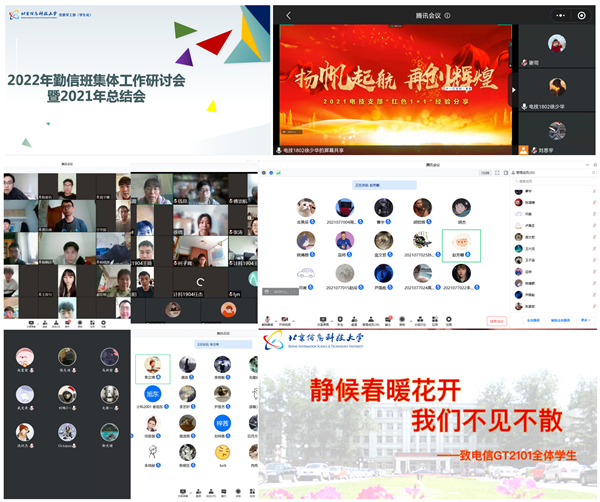 以党建引领实现思政教育入脑入心。开展“青春心向党,献礼二十大——我和我的家乡”主题作品征集,引领广大学生以良好的精神面貌喜迎二十大。举办“争做时代先锋·谱写青春华章”学生党员学习班,引导学生党员在线上学习期间持续发挥成才表率和先锋模范作用。以实体班团为基础,开展“云”集体建设,强化集体的育人功能,营造良好的校风、班风、学风。