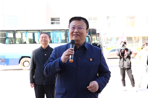 王传亮向志愿者们送上鲜花,欢迎他们平安返回学校。
