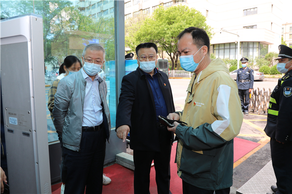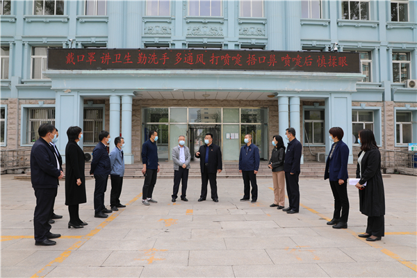 4月28日上午,校党委书记王传亮,校党委副书记、校长王永生在小营校区检查学校疫情防控和安全稳定工作。