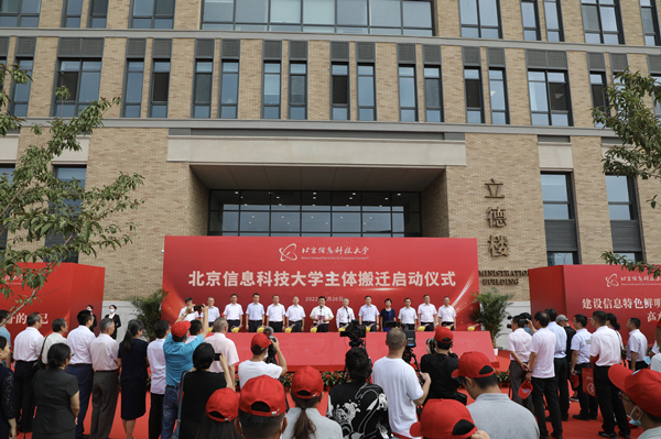 7月26日,北京信息科技大学在新校区举行东大门剪彩和校名石揭牌暨主体搬迁启动仪式,正式启动学校主体搬迁。全体在校领导班子成员,各职能部门、教学单位负责人和教职员工代表参加仪式。主体搬迁启动仪式由校党委副书记、校长王永生主持。东大门剪彩和校名石揭牌仪式由校党委常委、副校长陈昕主持。
