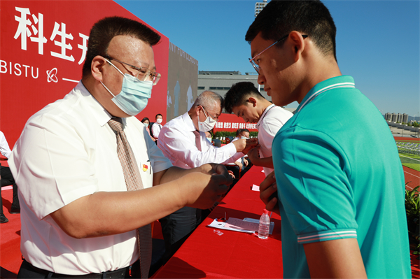 王传亮、王永生为2022级学生代表佩戴校徽,线上观礼学生自行佩戴校徽。
