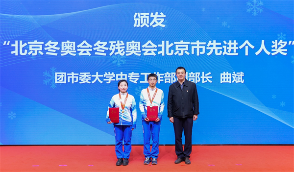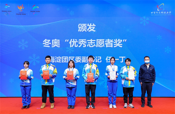 王传亮为“突出贡献单位奖”获奖单位颁奖;周志成为“先进单位奖”获奖单位颁奖;于世洁为“年度优秀志愿者奖”代表颁发证书;曲斌为“北京冬奥会冬残奥会北京市先进个人”获奖人员颁发证书;金峰为冬奥“先进个人奖”、“突出贡献奖”代表颁发证书;任一丁为冬奥“优秀志愿者奖”代表颁发证书。