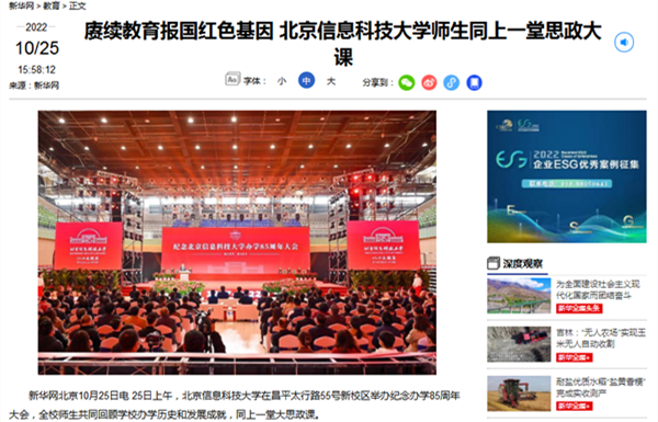 11.中国新闻周刊:赓续教育报国红色基因 师生同上一堂大思政课 北京信息科技大学举办纪念办学85周年大会