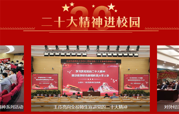 近日,北京市委教育工委联合光明网开设的“以理想之光照亮复兴之路:二十大精神进校园的北京实践”专题网站正式上线,集中宣传北京高校党委书记校长深入研究阐释党的二十大精神的理论成果。我校党委书记王传亮向全校师生宣讲党的二十大精神,党委副书记、校长王永生研究阐释党的二十大精神署名文章《全面提高人才自主培养质量》被专题网站关注报道。