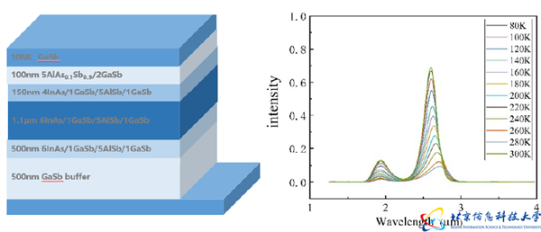 图1 外延短波红外超晶格探测器材料全结构及其PL吸收峰