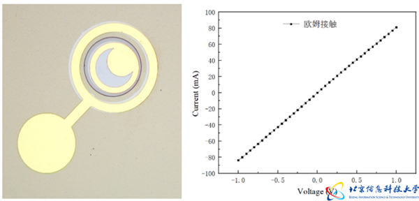 同时实验室开展InAs/GaSb/AlSb/GaSb短波红外超晶格探测器单元器件工艺摸索,探索磷酸:柠檬酸:双氧水的化合物比例,实现较小粗糙度的台面制作,并进行了Al2O3表面钝化的暗电流抑制工艺,且器件的欧姆接触效果较好。以上结果表明,实验室内部已经基本具备短波红外探测器单元器件的完整工艺迭代,为实现短波超晶格红外探测器奠定坚实设计、材料外延、器件加工及测试基础。