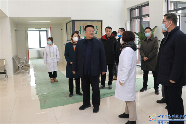 在校医院一层大厅,王传亮听取了校医院搬迁入住新校区后的运行情况汇报,询问了新校区急诊安排和师生就诊情况。他强调,校医院是守护师生健康的重要部门,要以此次搬迁入住新校区为契机,整体提升学校的医疗保障水平,筑牢师生安全健康防线。