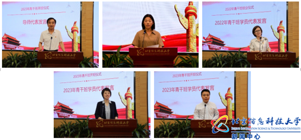 机电工程学院党委书记韩俊彦作为导师代表进行了发言。2022年青干班陈红英、王圣华分别代表自己的班级分享了学习体会与感悟。2023年青干班学员代表张雯、马铁健作表态发言。