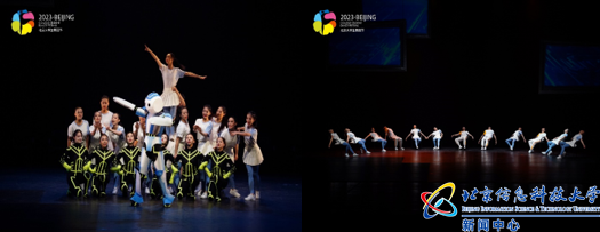 由我校美育(艺术教育)中心教师、校舞蹈团指导老师孙豆豆编创指导的原创现当代舞蹈作品《AI未来》和北京舞蹈学院、中央民族大学、北京交通大学、首都体育学院、中国戏曲学院等5所高校的8个舞蹈节目受邀参加闭幕式演出。在闭幕式的8个节目中,我校是唯一一所非专业且没有舞蹈特长生的高校,同学们全情投入,高质量的作品完成度获得了在场领导和各高校师生的一致好评。
