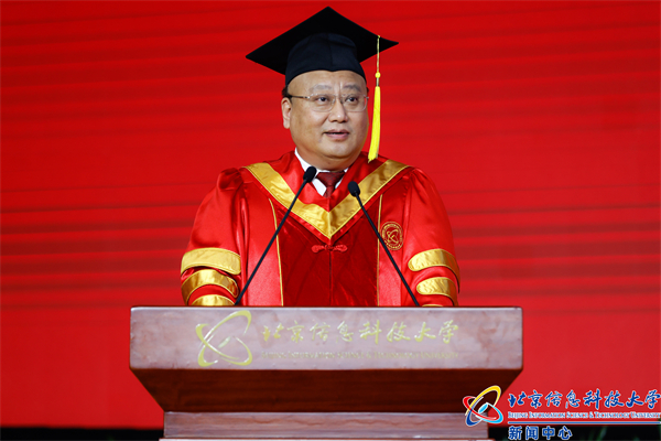 第一,传承治学报国情怀,在服务祖国中唱响青春旋律。历史长河波澜壮阔,一代又一代人接续奋斗创造了今天的信息科大。无论是我国压电学的奠基人张福学、仪器科学与技术学科奠基人齐恕安、全国优秀科技工作者徐小力等老前辈,还是教育部“创新团队”带头人祝连庆、全国优秀教师苏中、“黄大年式教学团队”带头人黄民等这些优秀的信息科大人,他们都以治学报国为人生信条,把学术科研做在共和国工业化信息化的进程中、做在改革开放最前沿和经济社会主战场上!大国重器里有他们的身影和脚印,先进装备里有他们的智慧和汗水,他们扎实钻研、埋头苦干的作风,引领者信息科大人、奋勇向前,成为推进学校高质量发展的宝贵精神财富。薪火相传,弦歌不辍。今年2月,我校在广州南沙成立光子感知技术研究院,光电学院6名博士生、17名硕士生驻扎南沙,深入开展红外、光纤等课题研究,助力大湾区发展。自动化学院4名研究生,奔赴青海,顺利地完成了“水资源环境检测信息系统”项目,助力国家绿水青山可持续发展。和这些优秀学子一样,在座的大多是95后、00后,你们成长在一个蓬勃发展、欣欣向荣的中国,没有上几代人的思想包袱和苦难意识,很多人将有机会不再需要为了生存而放弃自己热爱的东西,你们可以平视这个世界,将展现出更大的自信心和创造力。希望你们步入社会后不忘我们红色基因立校的光荣传统和治学报国的家国情怀,把情感之根、事业之根和命运之根深深扎入祖国的沃土,在报效祖国中唱响青春主旋律。未来,信息科大的底气与力量,就在你们砥砺奋斗、一往无前的步伐中;信息科大的担当与使命,就在你们勇担重任、矢志报国的奉献中!