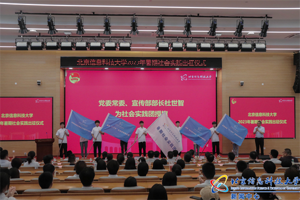杜世智为学校暑期学生社会实践团及各专项实践团授旗。
