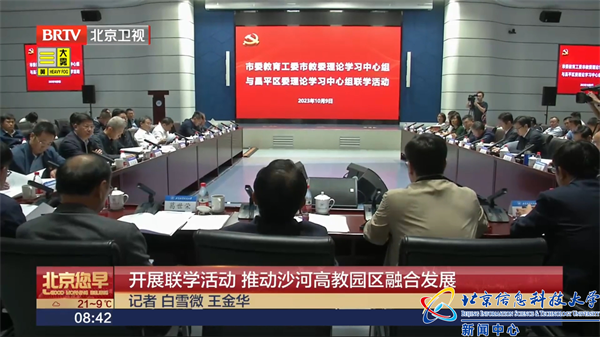 解江凌在集体学习研讨中作交流发言并接受北京电视台采访。他谈到,北京信息科技大学作为信息特色鲜明的高水平大学,下一步我们将坚持以服务国家战略和首都经济社会发展为导向,立足办学定位,发挥特色优势,持续推进与昌平区的战略合作和产学研的深度融合,在人才培养、科技成果落地转化等方面持续发力,力争取得更多成果,做出更大的贡献。