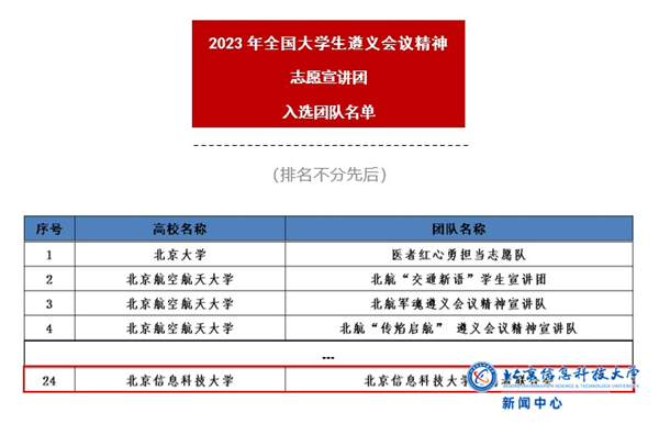 秉承“坚定信念、实事求是、独立自主、敢闯新路、民主团结”的会议精神,实践结束后,学校成立遵义精神宣讲团,并入选2023年全国大学生遵义会议精神志愿宣讲团,随着宣讲工作进一步推进,2024年也将会有更多的信息科大同学参与到遵义会议精神的宣讲中来。