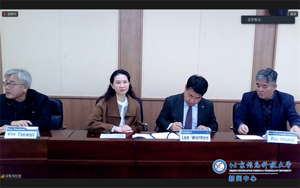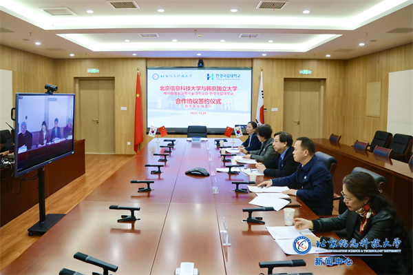 12月26日上午,校党委副书记、校长郭福在沙河校区立德楼530会议室以视频形式会见了韩国韩京国立大学校长李元熙、副校长金泰完,并签署两校合作协议。