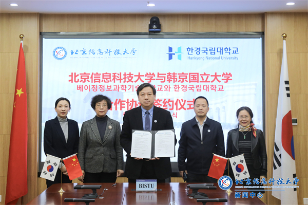会上,郭福致辞。他从历史发展、专业学科、人才培养、办学特色、科技创新等方面介绍了学校情况。郭福表示,北京信息科技大学与韩国韩京国立大学均有80余年深厚历史,都由高水平院校合并而来,在信息技术领域均有所长,且都是部地重点支持建设的高校,这些相似共通之处为双方深入合作奠定了良好的现实根基。同时,两国地缘优势得天独厚,韩国是我校来华留学生最主要的生源国,也因此我们相关人才培养经验丰富、质效良好。期待两校以合作协议的签署为起点,在人才联合培养、教师交流、科研合作等领域深入开展高质量务实合作,共同促进中韩两国教育文化交流迈上新台阶。