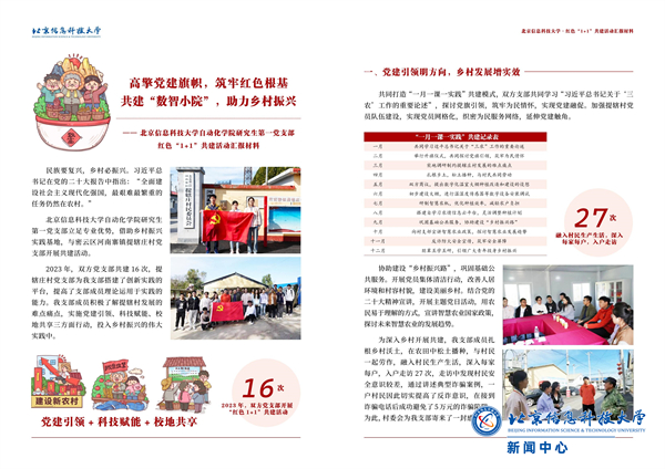 2023年红色“1+1”共建活动于6月正式启动。党委学工部、研工部高度重视学生党组织建设,组织召开红色“1+1”专项培训会、学生党支部书记论坛、红色“1+1”评审答辩会等,搭建交流学习平台,号召学生党支部共同进步,持续推动学生党建工作高质量发展。各学院共申报创建完成红色“1+1”项目63个,经校级答辩评审,推荐20个项目参评市级示范活动,展现信息科大学生党员将“小我”成长融入“大我”奋斗的青春担当。