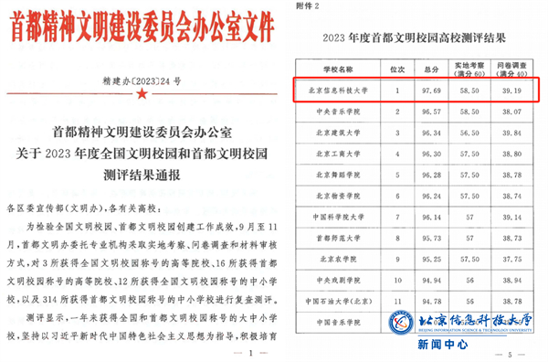 高质量、优成效!学校在2023年度“首都文明校园”测评结果中位列第一