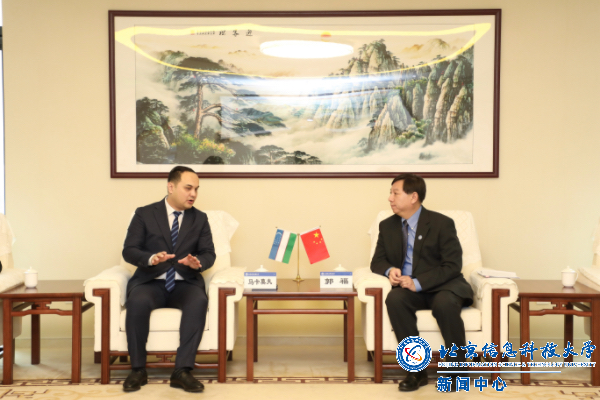 郭福对马卡莫夫校长一行表示热烈欢迎,对两校即将确立正式合作关系、携手深化中外合作办学领域探索表示期待。他从学校的悠久办学历史、人才培养成效、优势特色领域、学科专业布局、科研前沿动态等情况,介绍了学校立足信息特色、内涵创新发展所取得的突破性办学成果。郭福表示,乌兹别克斯坦是最早支持并积极参与“一带一路”倡议的国家之一,中乌两国有众多共建“一带一路”合作项目,为两校深化合作奠定坚实的宏观背景和现实根基。北京信息科技大学与塔什干信息技术大学同为扎根两国首都地区,以信息技术为特色、以信息类学科为主干学科的高校,具有诸多相似点、互通处、契合面,合作方向多元、潜力深厚、前景广阔,合作备忘录的签署将正式开启两校的交流合作,期待双方在先前友好往来的基础上加强互动,共同巩固两校在信息技术领域的优势地位,助力中乌两国高等教育和文化交流迈上新台阶。