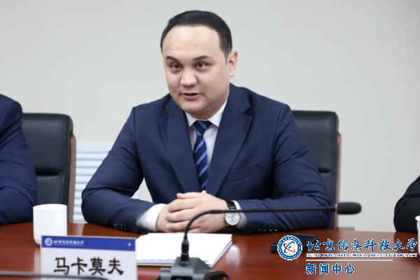 马卡莫夫对我校的热情招待表示感谢,并从办学历史、国际合作、人才培养等方面介绍了塔什干信息技术大学各方面情况。马卡莫夫强调,塔什干信息技术大学高度重视人才培养及国际合作,非常荣幸能与北京信息科技大学建立合作伙伴关系,期待两校在信息技术等优势领域内开展学科共建及学生联合培养等合作,实现双方合作共赢并对中乌友好往来作出贡献。