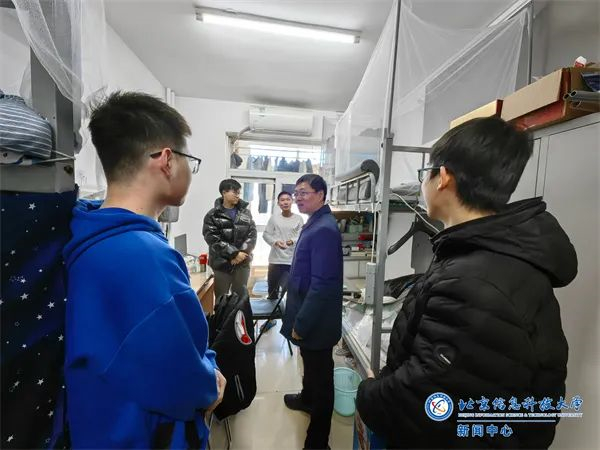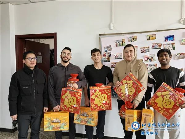 1月30日,国际交流学院领导老师来到健翔桥校区留学生公寓慰问全体留校国际学生