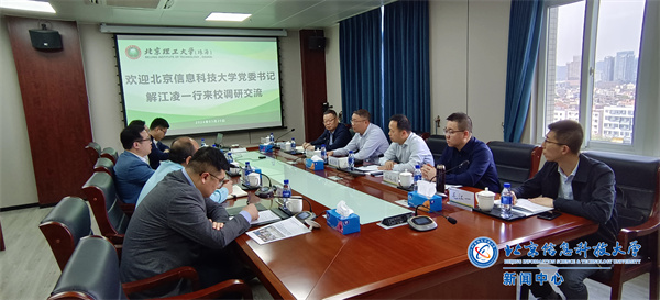 在北京理工大学珠海校区,北京理工大学党委常委、副校长邹美帅热情接待了解江凌一行。座谈中,邹美帅介绍了北京理工大学(珠海)的建设历程及现状,他指出,北京理工大学珠海校区是北京理工大学五个校区之一,北京理工大学坚持“高起点、高水平、强特色”的办学标准,全方位将珠海校区打造为学校“双一流”建设极具活力和国际竞争力的发展特区,使之成为粤港澳大湾区建设的主力军、珠海市经济社会发展的生力军、“一流大学群体”的新引擎和北理工“双一流”建设的增长极。解江凌介绍了我校历史沿革、办学定位、优势特色、人才培养、科学研究、社会服务等方面的建设发展情况,着重介绍了学校在张家口地区筹建新校区的战略布局、规划思考和相关问题。