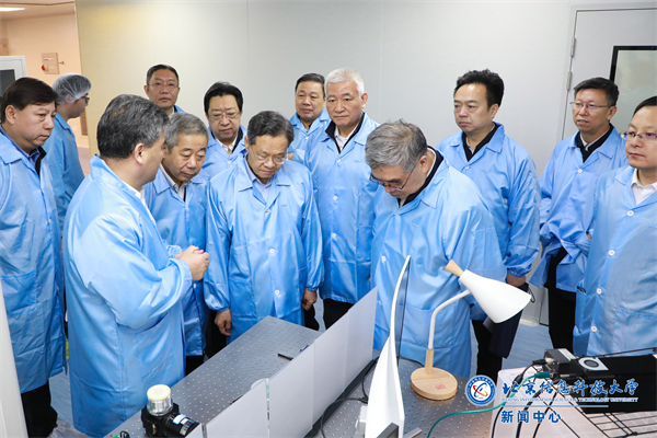 陈武、朱永新一行参观了分子束外延实验室和高动态高速光纤传感系统实验室(教育部重点实验室)。通过参观MBE超净间实验室先进设备、在研项目、科研成果,详细了解了分子束外延作为材料科学仪器领域的“卡脖子”技术,当前所面临的战略机遇、开发难度和应用场景;了解了光纤传感技术领域重大项目的研究工作和关键性核心仪器的研制、生产和应用。