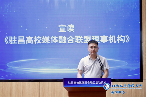 孟利群宣读《驻昌高校媒体融合联盟理事机构》